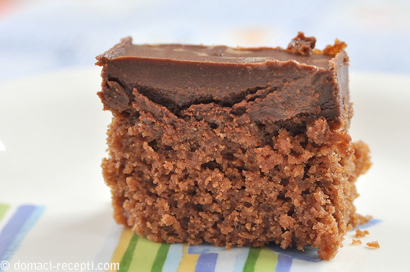 Kalup veličine 25x35 cm premažemo uljem i pospemo brašnom. Pripremimo šalicu od 2 dl, najbolje plastičnu od jogurta. Maslac umutimo sa šalicom šećera da postane pjenasto, pa dodamo jedno po jedno jaje. Na kraju dodajemo mlijeko, polako i pažljivo miješamo. U posebnoj posudi izmiješamo prosijano brašno, kakao i prašak za pecivo. To umiješamo u smjesu jaja i maslaca. Još dodamo dvije velike žlice džema od marelica. Kad se sve sjedini, stavljamo u zagrijanu pećnicu. Pazimo da se ne prepeče. Nakon što se ohladi, premažemo ga slojem džema, pa odložimo u hladnjak. Nakon što se skroz ohladi, premažemo čokoladom rastopljenom u slatkom vrhnju i maslacu. Ostavimo još sat vremena na hladnom, a zatim režemo na tanke pravokutnike i poslužimo. Kolač je fin i dosta sladak, a biskvit sočan i mekan.