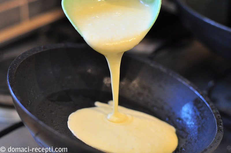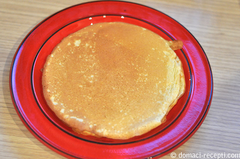 U jednoj posudi izmiješamo brašno, šećer, vanilin šećer i prašak za pecivo. Žumanjke i bjelanjke odvojimo. Žumanjke miješamo pjenjačom i ulijevamo jogurt i mlijeko. Maslac je potrebno otopiti. Suhoj smjesi dodamo tekuću i dobro izmiješamo da se sastojci sjedine. Dodamo maslac i na kraju snijeg od bjelanjaka. Lagano promiješamo i smjesa je spremna za pečenje. Tavu premažemo kistom sa malo ulja i jako zagrijemo. Pečemo na laganoj vatri dok se ne ispuhnu svi mjehurići, tada palačinku okrenemo i pečemo još par minuta. Za pravi američki doživljaj, palačinke prelijemo javorovim sokom, ali možemo ih poslužiti i sa bilo kojim slatkim namazom.