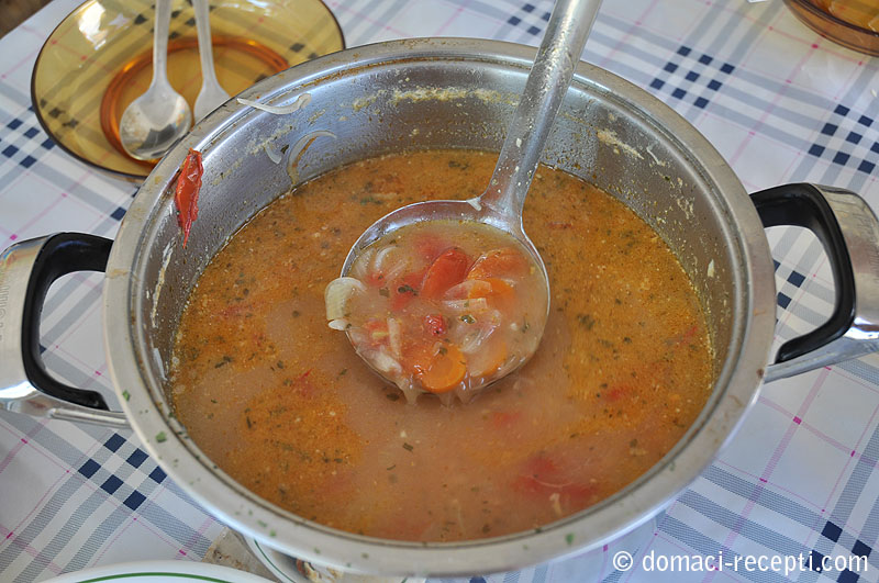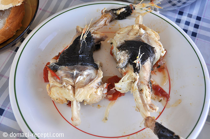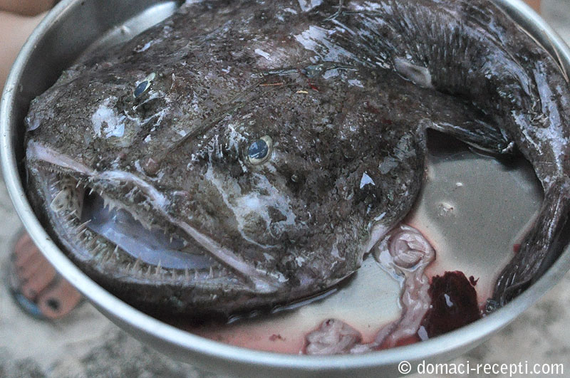 Samo ime govori kako ova riba izgleda, neprivlačno i ružno, pa ju zato lako i prepoznajemo.Još se naziva vražica, rošpo ili žaba.Smeđe je boje, sa velikom glavom i ustima, a može narasti i do 2 metra duljine i težiti 60 kg.Grdobina je specijalitet zbog vrlo ukusnog mesa i sa malo kostiju, a najčešće se sprema na brudet.Ribu isječemo na komade, krumpire ,mrkvu i luk narežemo na fete.Na dno dubljeg lonca stavimo glavu ribe, po njoj fete luka i krumpira, pa ostatak ribe.Zalijemo bijelim vinom i maslinovim uljem.Na kockice narežemo rajčicu i posložimo po ribi i krumpiru.Možemo dodati i malo koncentrata rajčice, rastopljenog u toploj vodi.Ova riba pri kuhanju ispušta dosta vlastite tekućine, pa ne treba pretjerati sa dolijevanjem vode. Moglo bi se dogoditi da nam brudet postane prerijedak.Posudu stavljamo na jaku vatru da zakuha. Vatru smanjujemo i pustimo da se riba kuha.Kod spremanja brudeta ne smijemo miješati sastojke u loncu, nego lonac par puta protresemo da se svi sastojci potope u šugu.Vrijeme kuhanja brudeta određuje krumpir, kome je potrebno 20-ak minuta da bude gotov. Riba je brzo gotova, a ako se dulje kuha, neće se raspasti.Ako brudet ispadne prerijedak, možemo dodati malo krušnih mrvica, koje će ga zgusnuti ili zgniječiti koji krumpir.Ugasimo vatru i ostavimo brudet da odmori 10-ak minuta, tek ga onda serviramo za ručak ili večeru.Uz brudet možemo poslužiti salatu po želji, a neizbježan je fini domaći kruh za umakanje u šug.