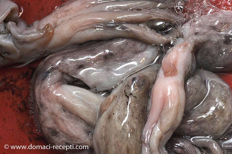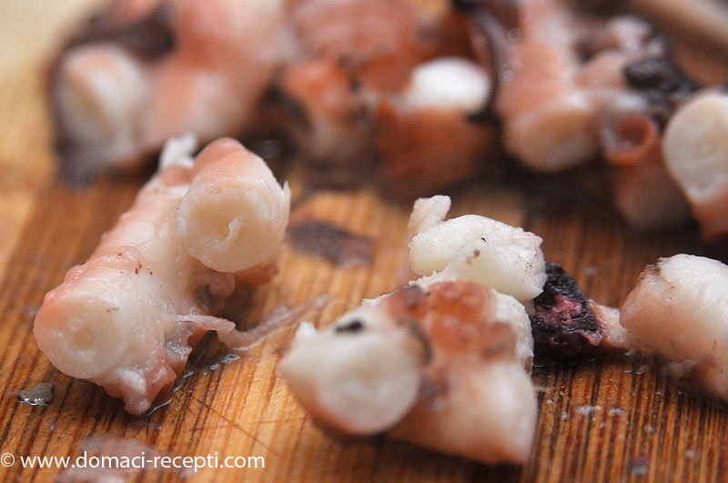 Muzgavce je prije kuhanja potrebno zamrznuti kako bi omekšali.Zatim ih kuhamo sat do sat i pol, jednako kao hobotnicu.Nakon toga lako ćemo skinuti opnu i narezati ih na manje komade.U posebnom loncu skuhamo krumpir narezan na kockice.U velku zdjelu stavimo komade muzgavaca i krumpira, sitno narezan luk i češnjak, te salatu začinimo po želji.Stavimo maslinovo ulje, ocat, popaprimo, posolimo i dodamo peršin.Gotovu salatu spremimo u hladnjak na par sati, i onda je spremna za serviranje. Sličan recept u originalu dolazi za salatu od hobotnice .